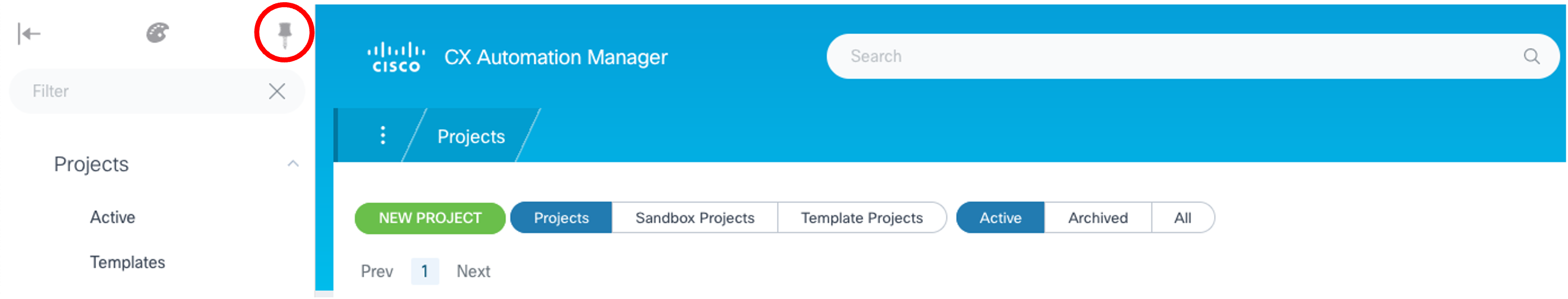 By default, the menu will automatically collapse as you navigate through the CXTM GUI. It can be pinned to always stay expanded.